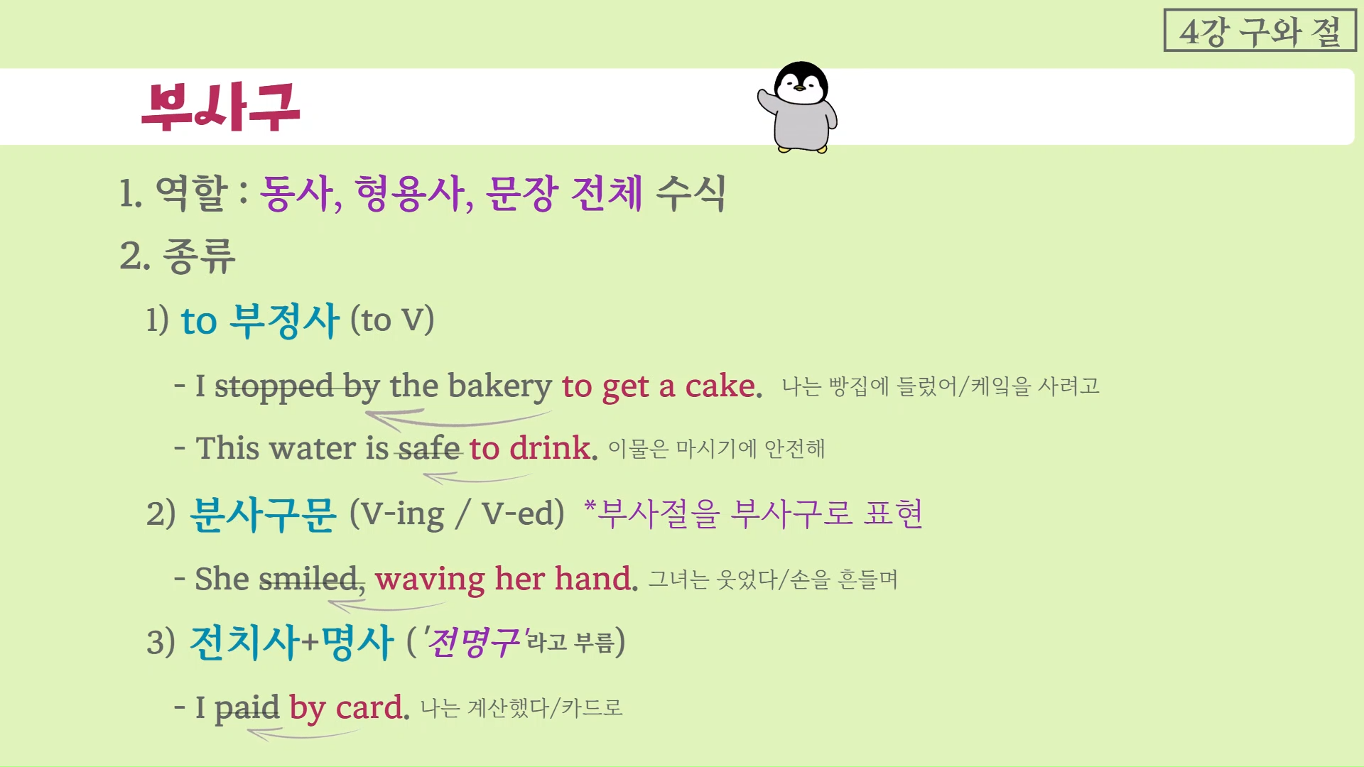 전명구는 형용사구와 부사구 역할을 할 수 있답니다.