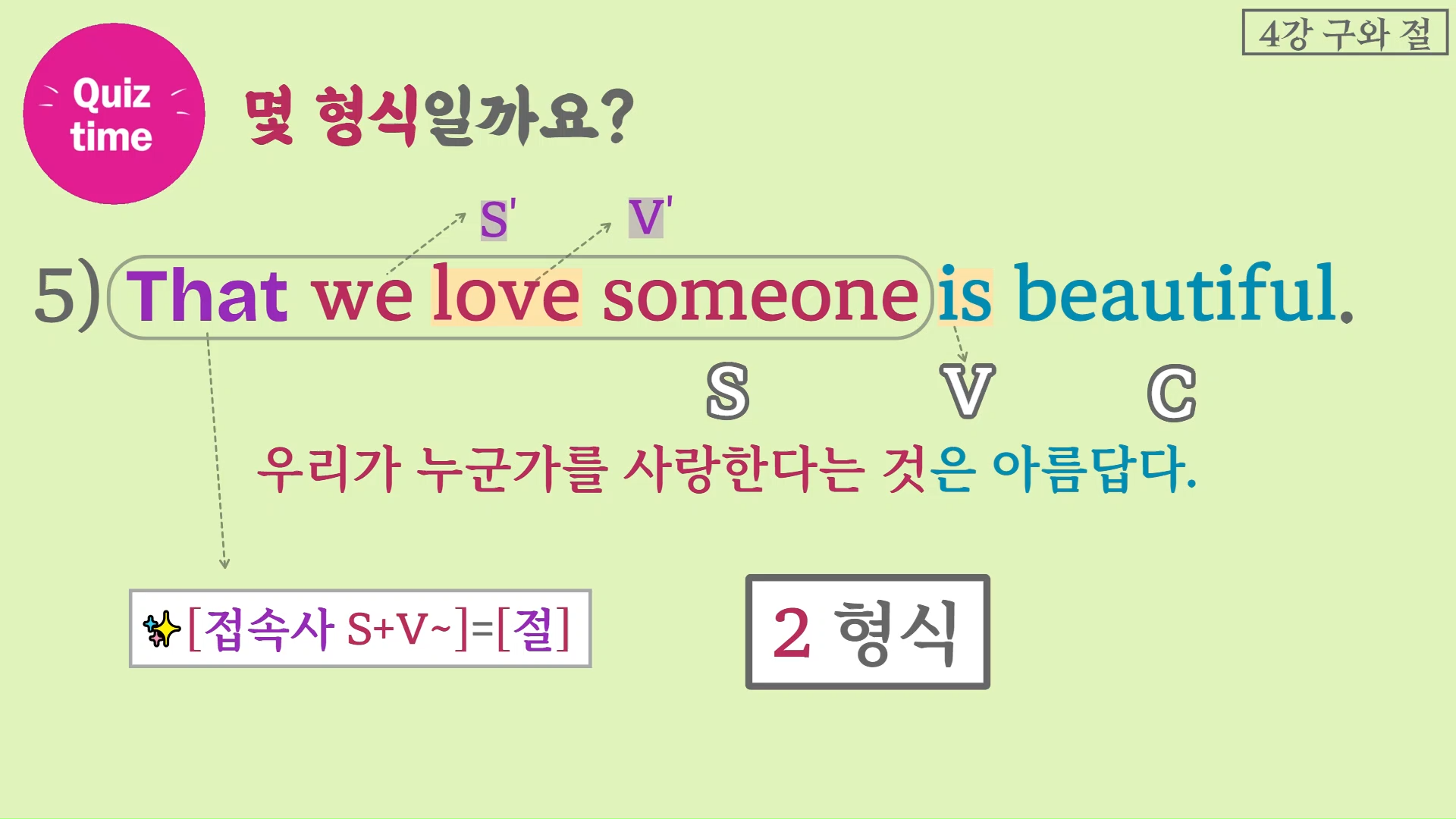 👉🏻 That we love someone 같은 절이 오든 문장의 기본 패턴은 변하지 않는다는 사실!