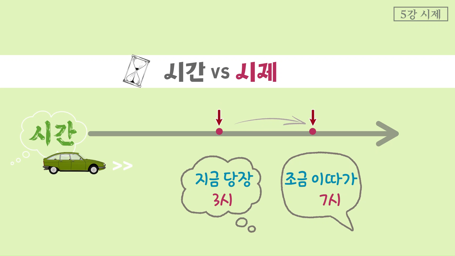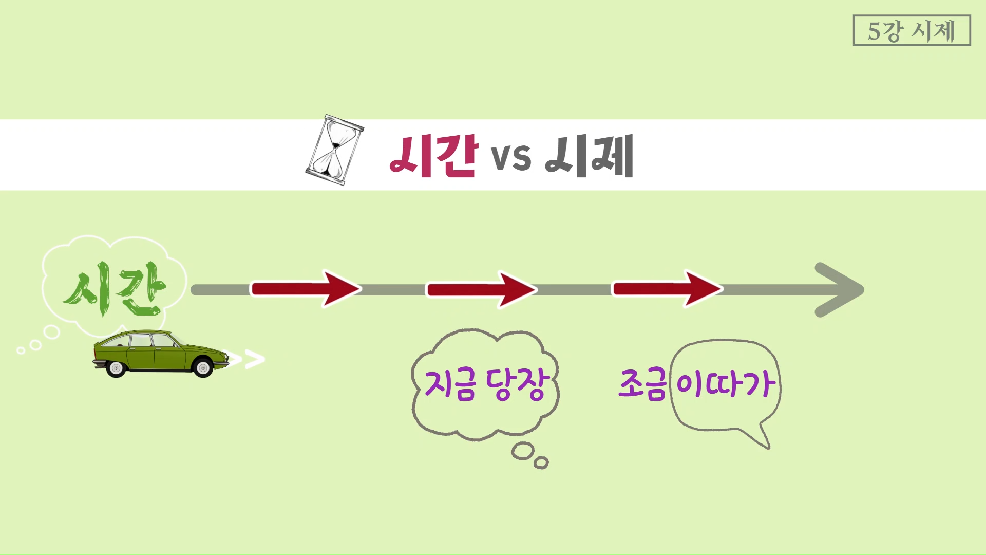 어떠세요? 시간과 시제 개념을 말로 설명하지 않아도 자연스럽게 수긍이 되지 않나요?