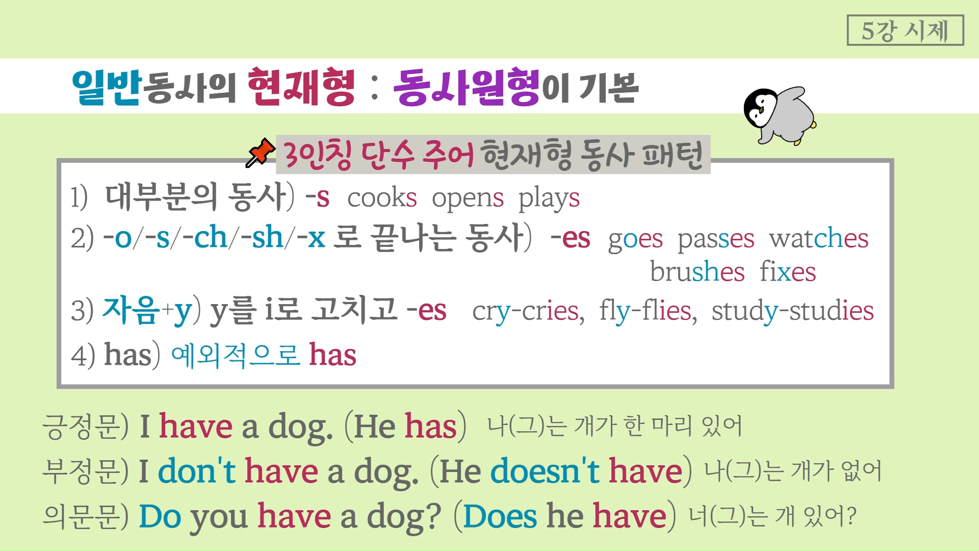 She, He, It 같은 3인칭 단수 주어일 경우 일정한 패턴을 따라 변형이 되는데요.