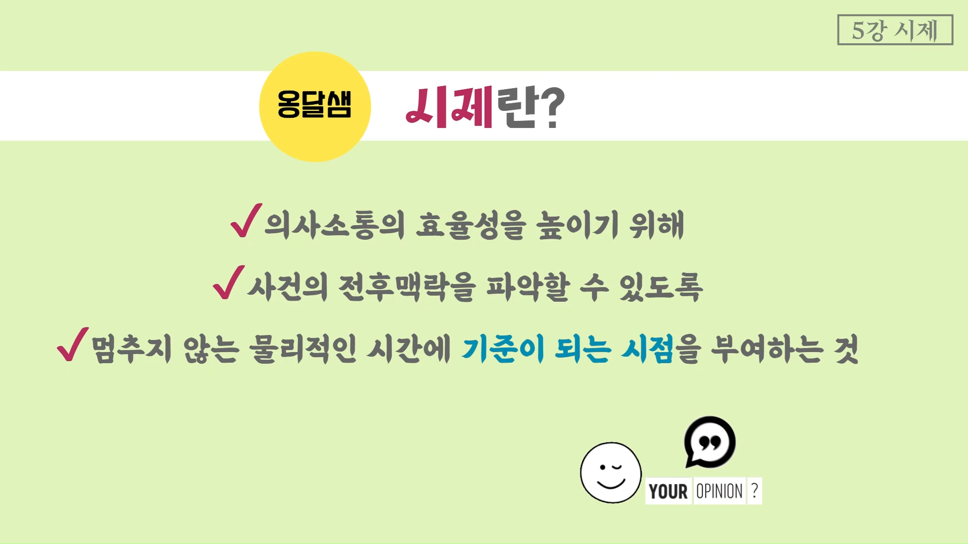 의사소통의 효율성을 높이기 위해 사건의 전후맥락을 파악할 수 있도록 멈추지 않는 물리적인 시간에 기준이 되는 시점을 부여하는 것